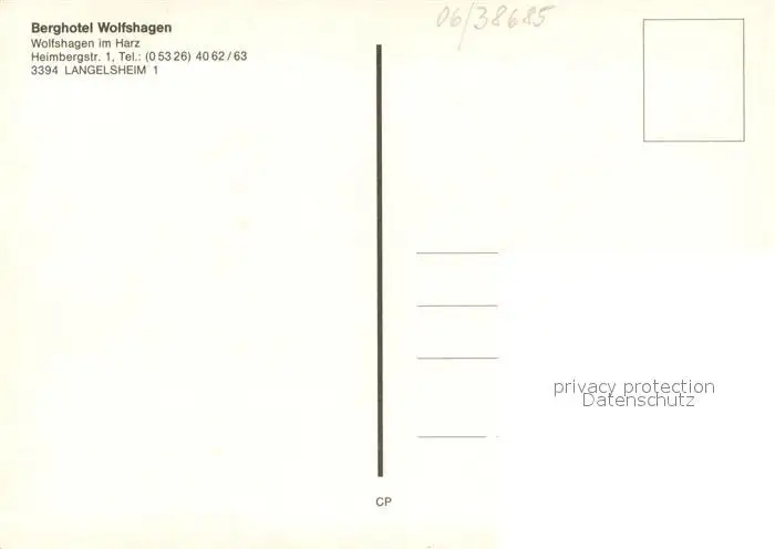 Langelsheim Berghotel Wolfshagen im Harz Restaurant Rezeption Langelsheim postalisch nicht gelaufen nach 1965 Erhaltung siehe scans [FriedD77] Frierer