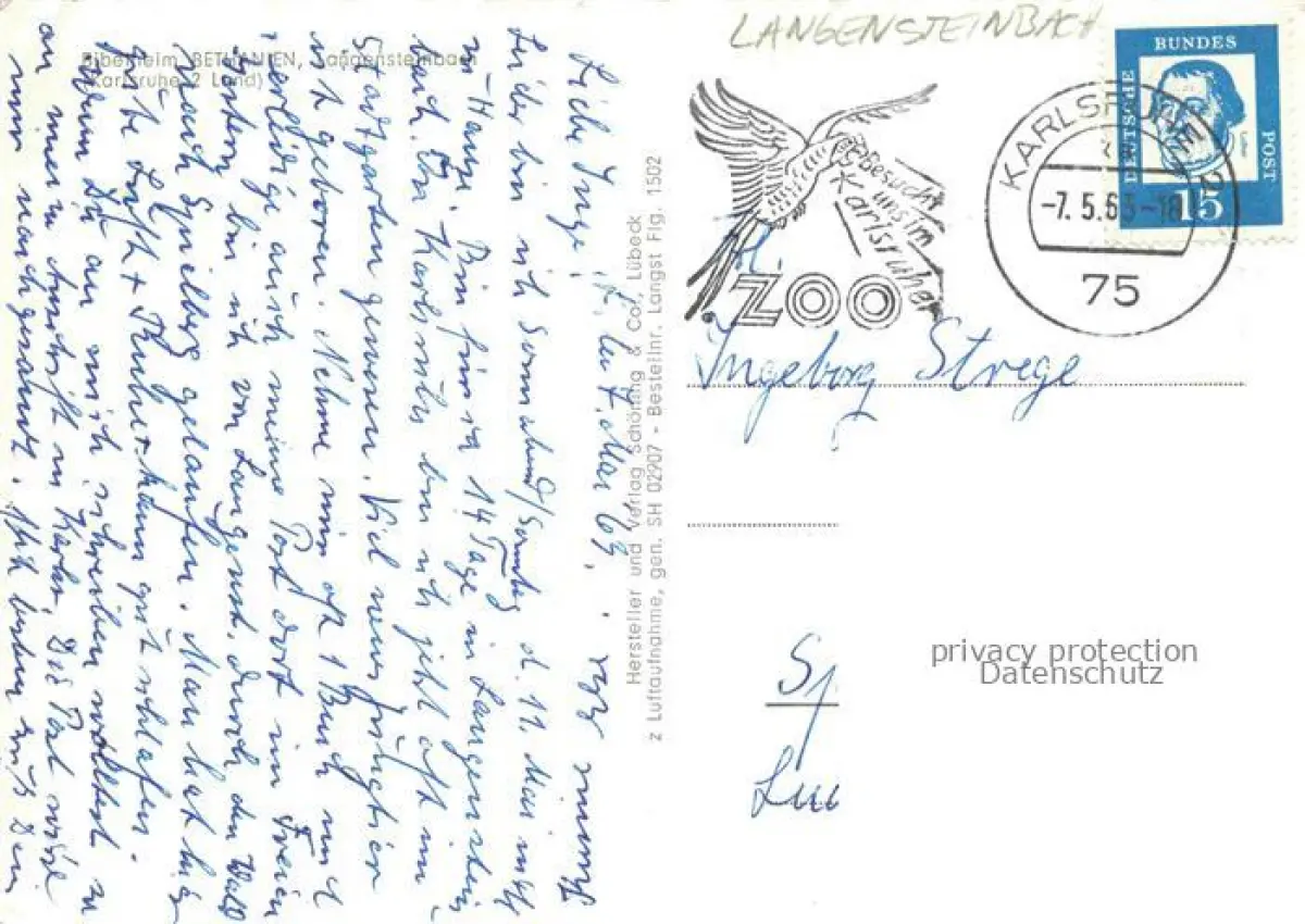 Langensteinbach Karlsbad Karlsruhe BW Fliegeraufnahme postalisch gelaufen Erhaltung siehe scans [WerneD78] alte Postkarte Wern Katcode 11110008215096