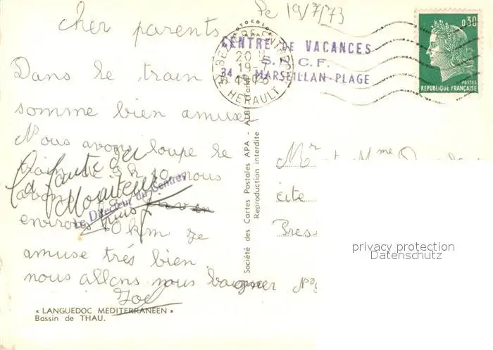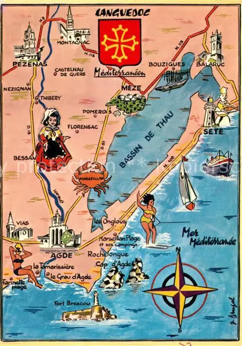 Languedoc-Roussillon Bassin de Thau Languedoc-Roussillon postalisch gelaufen 1973 Erhaltung siehe scans [WerneD78] WernPID7