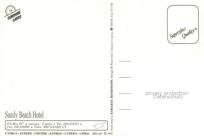 Larnaca Sandy Beach Hotel Larnaca postalisch nicht gelaufen nach 1965 Erhaltung siehe scans [WerneD78] WernPID7