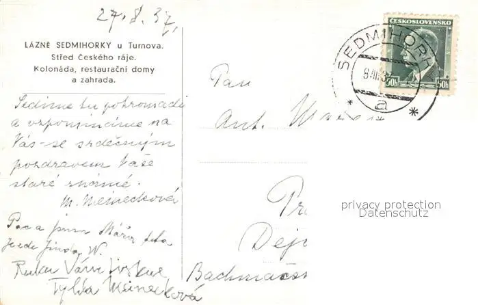 Lazne_Sedmihorky Kolonada restauracni domy a zahrada Lazne Sedmihorky postalisch gelaufen 1937 Erhaltung siehe scans [WerneD78] WernPID7