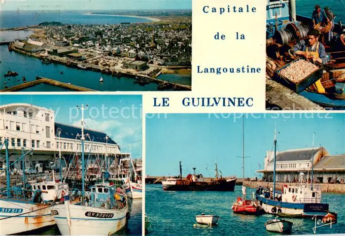 AK / Ansichtskarte Le_Guilvinec Vue generale aerienne Debarquement des langoustines Bateaux devant la creiee Mouvements de bateaux dans le port Le_Guilvinec