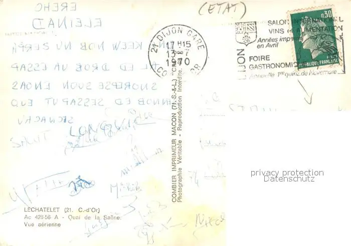 Lechatelet Quai de la Saône vue aérienne Lechatelet postalisch gelaufen 1970 Erhaltung siehe scans [FriedD77] Frierer