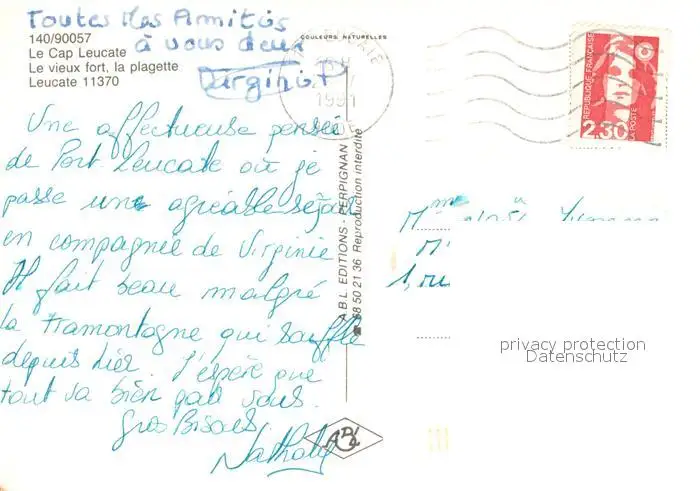Leucate Cap vieux fort et la plagette vue aérienne Leucate postalisch gelaufen 1991 Erhaltung siehe scans [FriedD77] Frierer