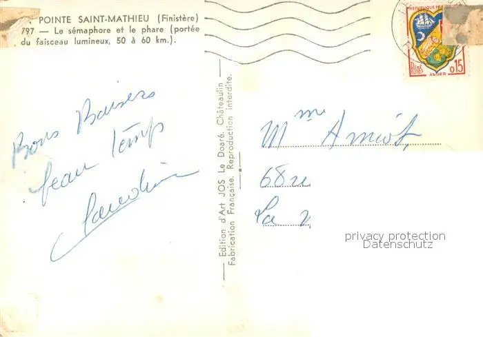 Leuchtturm Pointe Saint-Mathieu Leuchtturm postalisch gelaufen 1921-1965 Erhaltung siehe scans [IrynaD87] Iryn PID