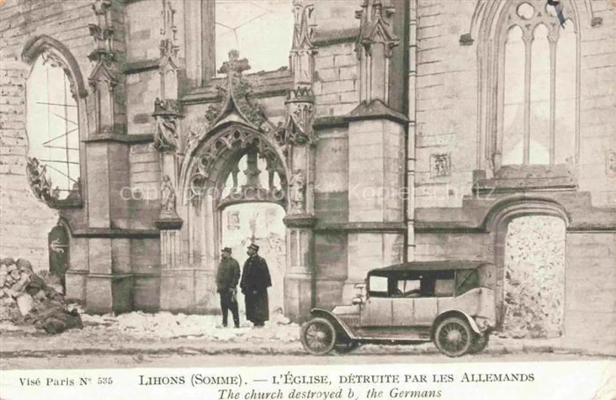 14109195 Lihons-en-Santerre PERONNE 80 Somme L'église détruite par les Allemands Automobile Ruines Grande Guerre Truemmer 1. Weltkrieg postalisch nicht gelaufen Erhaltung siehe scans [FriedD77] Frie Katcode 11170080480481