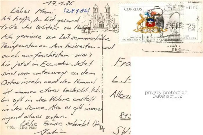 Lima_Peru Lima_Peru postalisch gelaufen 1986 Erhaltung siehe scans [NatalD47] NataID47