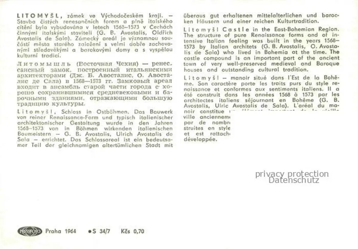 Litomysl Leitomischl CZ Zamek ve Vychodoceskem kraji postalisch nicht gelaufen Werbekarte (keine Postkarte) Erhaltung siehe scans [WerneD78]