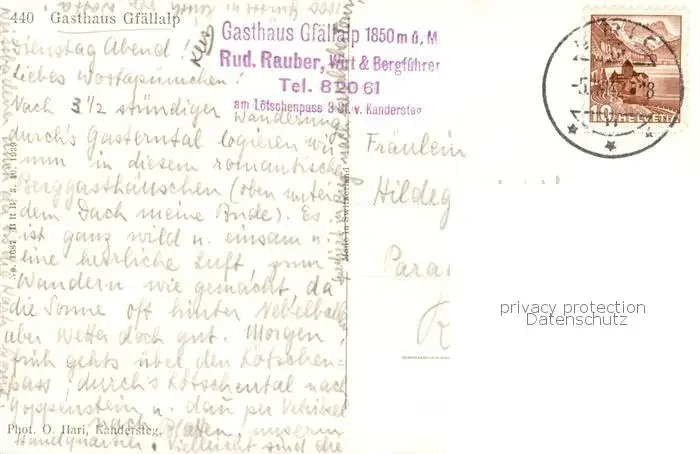 Loetschenpass_BE Gasthaus Gfaellalp postalisch gelaufen 1942 Erhaltung siehe scans [WerneD78] WernPID7