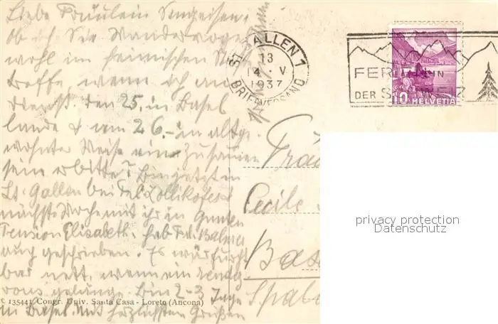 Loreto_Ancona Loreto Ancona postalisch gelaufen 1937 Erhaltung siehe scans [LiesaD40] LiesID40