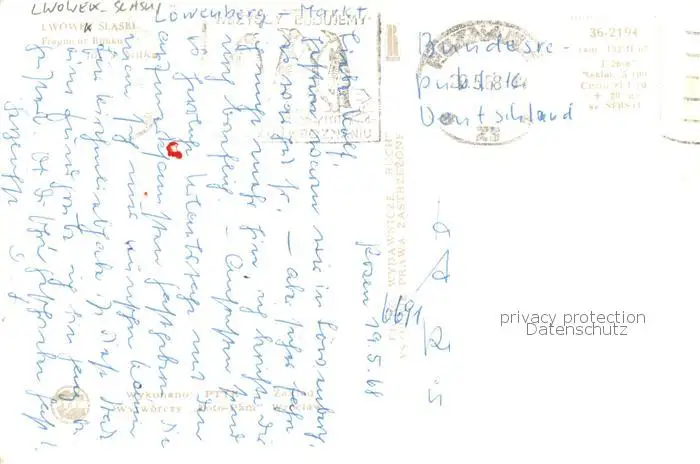 Lwowek_Slaski_Loewenberg_Schlesien_PL Fragment Runku postalisch gelaufen 1968 Erhaltung siehe scans [LiesaD40] LiesID40