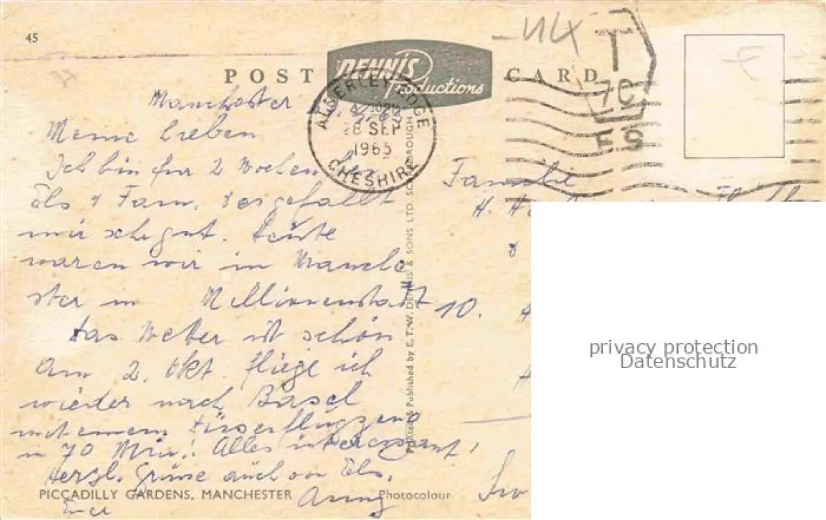 old postcard MANCHESTER UK Piccadilly Gardens postalisch gelaufen Erhaltung siehe scans [WerneD78]