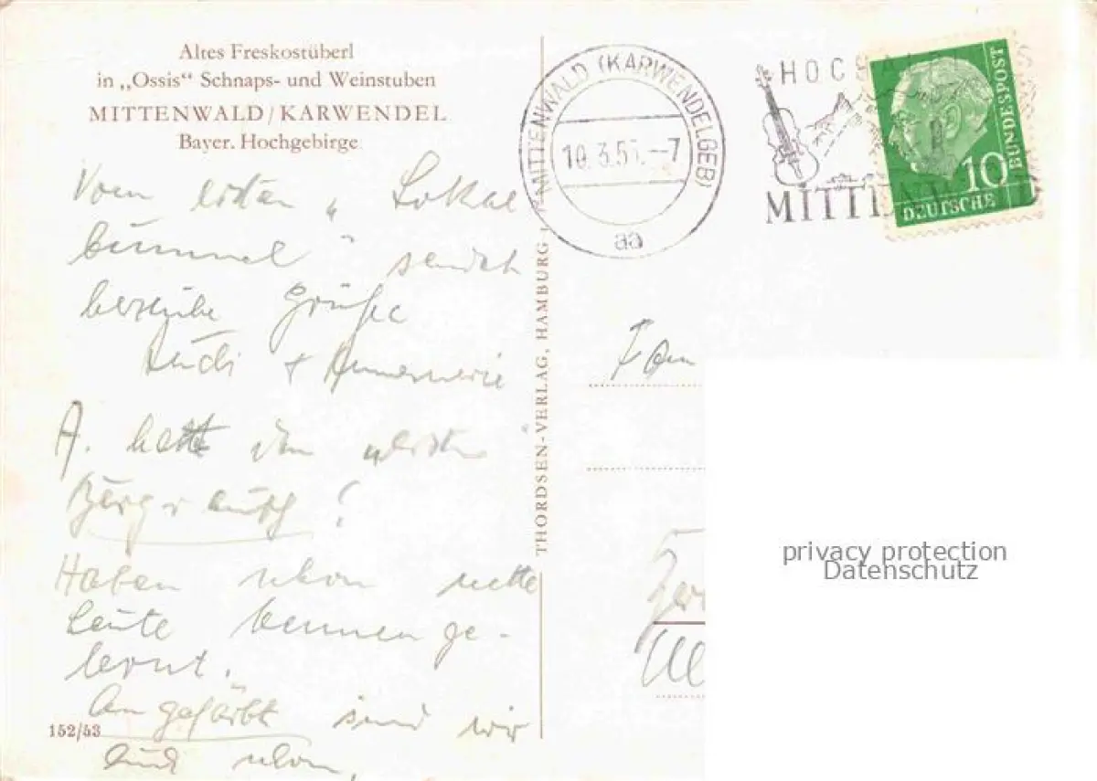 MITTENWALD Bayern Altes Freskostueberl in Ossis Schnaps und Weinstuben postalisch gelaufen Erhaltung siehe scans [WerneD78] alte Postkarte Wern Katcode 11110009180123