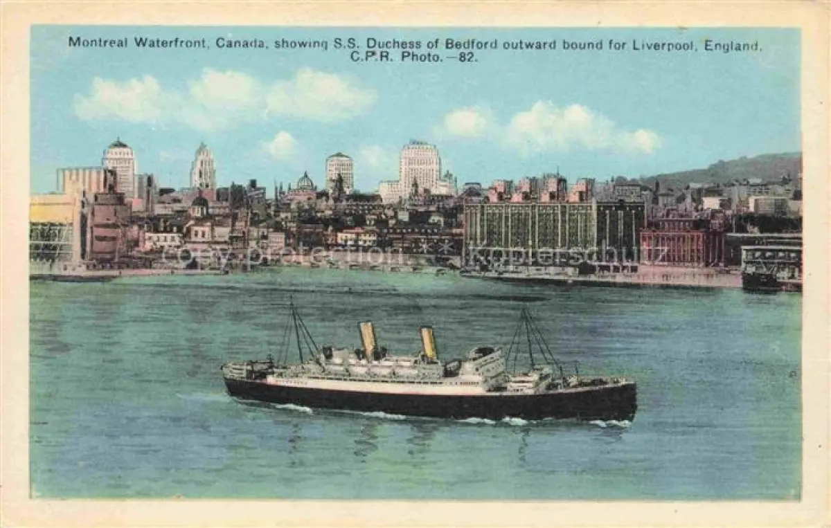 AK / Ansichtskarte MONTREAL QUEBEC Canada Waterfront showing S.S. Duchess of Bedford outward bound for Liverpool