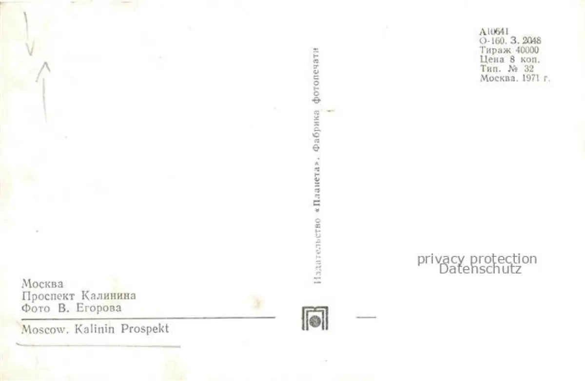 MOSCOW Moskau Moscou RU Kalinin Prospekt postalisch nicht gelaufen Erhaltung siehe scans [WerneD78] Wern Katcode 11440