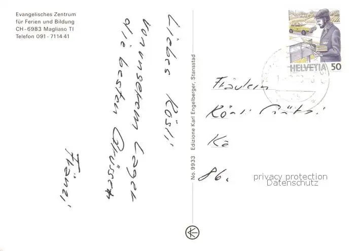 Magliaso_Lago_di_Lugano Evangelisches Zentrum fuer Ferien und Bildung Swimming Pool Magliaso_Lago_di_Lugano postalisch gelaufen 1988 Erhaltung siehe scans [FriedD77] Frierer