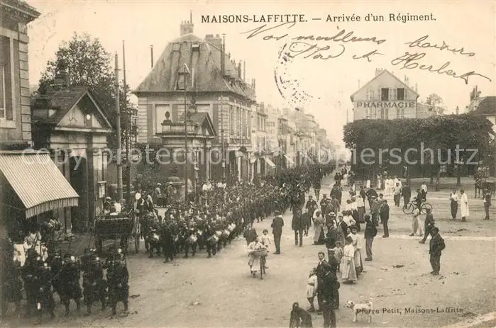 Maisons-Laffitte Arrivee d'un Regiment Maisons-Laffitte postalisch gelaufen bis 1920 Erhaltung siehe scans [KathaD81] Kathoren