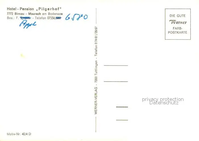 Maurach_Birnau Hotel Pension Pilgerhof Maurach Birnau postalisch nicht gelaufen nach 1965 Erhaltung siehe scans [WerneD78] WernPID7
