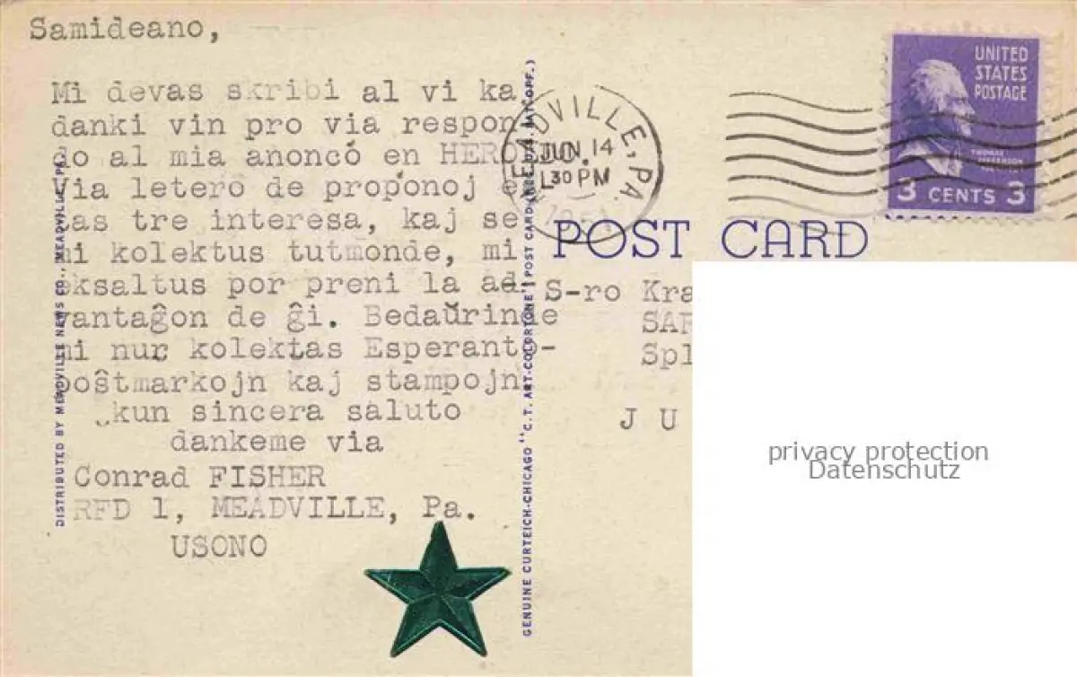 old postcard Meadville Pennsylvania USA American Viscose Corporation postalisch gelaufen Erhaltung siehe scans [FriedD77]