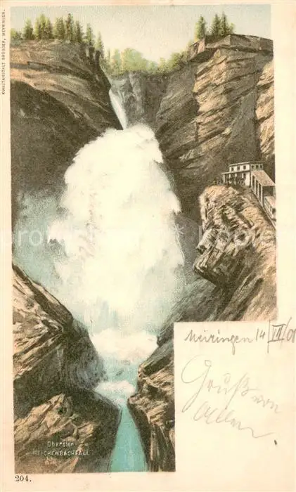 Meiringen_BE Oberer Reichenbachfall Wasserfall Berner Alpen Meiringen BE postalisch gelaufen 1901 Erhaltung siehe scans [FriedD77] Frierer