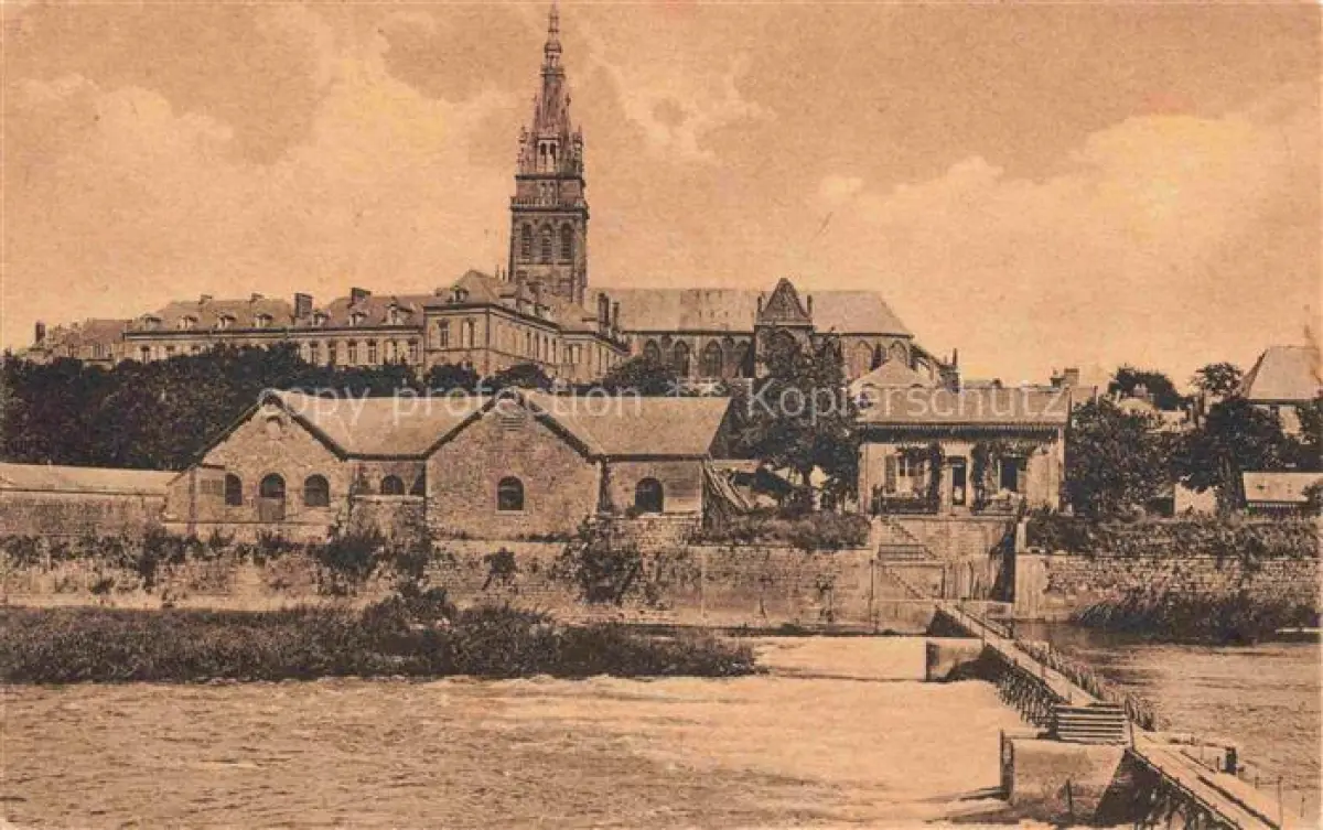 carte postale Mezieres CHARLEVILLE-MEZIERES 08 Ardennes Ansicht vom Fluss aus Blick zur Kirche postalisch gelaufen Feldpost - Stempel Erhaltung siehe scans [FriedD77]