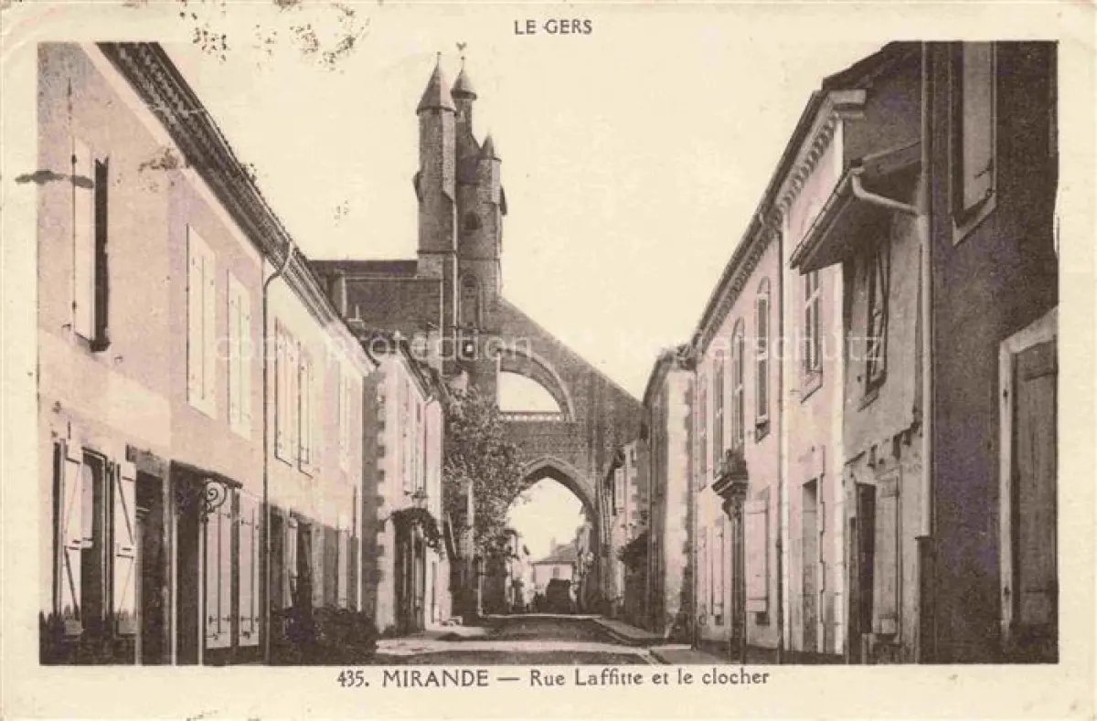 14109320 Mirande-la-Jolie 32 Gers Le Gers Rue Laffitte le clocher postalisch gelaufen Erhaltung siehe scans [SanaeD93] alte Postkarte Sana Katcode 11170032332256