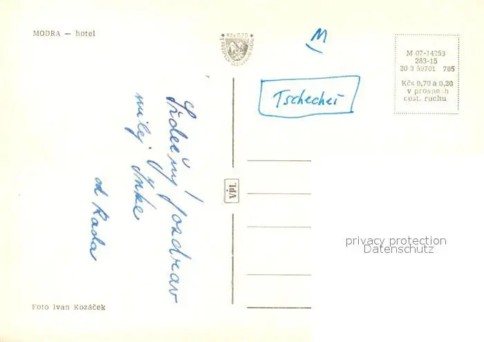Modra Hotel Modra postalisch nicht gelaufen nach 1965 Erhaltung siehe scans [WerneD78] WernPID7