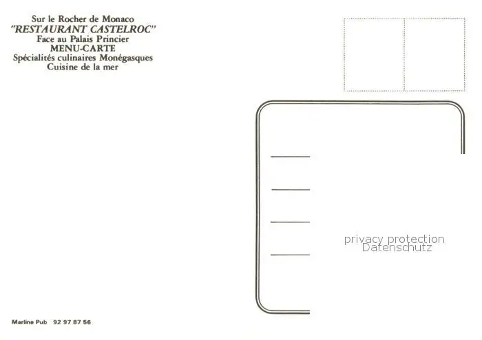 Monaco Restaurant Castelroc Monaco postalisch nicht gelaufen nach 1965 Erhaltung siehe scans [LiesaD40] LiesID40