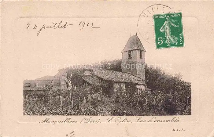 carte postale Monguilhem Condom 32 Gers Eglise Vue d'ensemble postalisch gelaufen Erhaltung siehe scans [WerneD78]