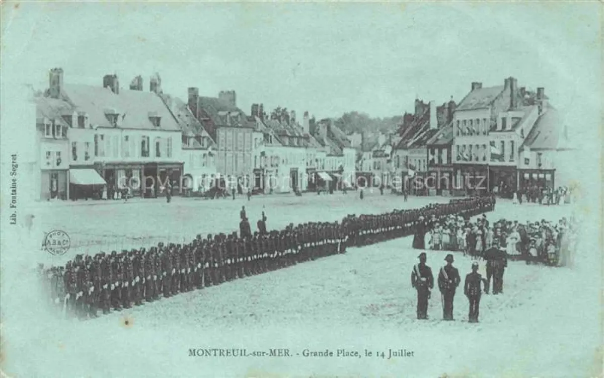 14120334 Montreuil-sur-Mer 62 Pas-de-Calais Grande Place 14 Juillet postalisch gelaufen Erhaltung siehe scans [FriedD77] carte postale Frie Katcode 11170062462588