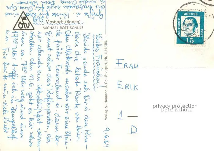 Mosbach_Baden Michael Rott Schule Mosbach_Baden postalisch gelaufen 1964 Erhaltung siehe scans [WerneD78] WernPID7