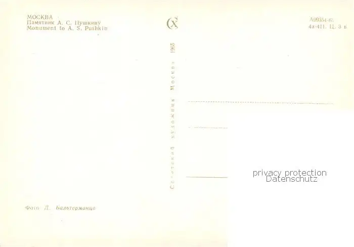 Moskau_Moscou_MOSCOW_RU Denkmal A.S. Puschkin postalisch nicht gelaufen nach 1965 Erhaltung siehe scans [IrynaD87] Iryn PID