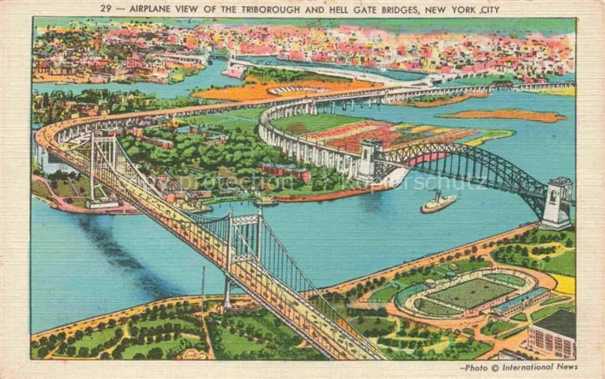 AK / Ansichtskarte NEW_YORK_City_USA Airplane view of the Triborough Bridge and Hell Gate Bridges Illustration