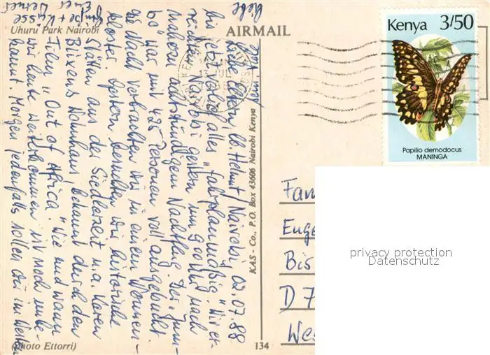 Nairobi Uhuru Park Nairobi postalisch gelaufen 1988 Erhaltung siehe scans [WerneD78] WernPID7