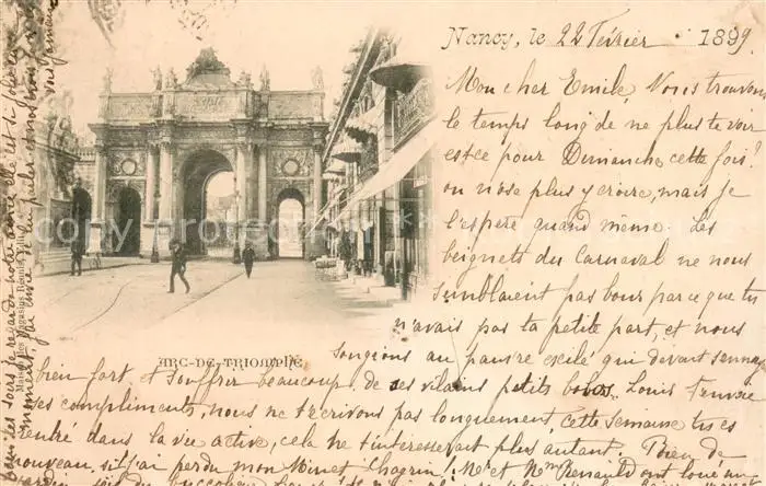 Nancy_54 Arc de Triomphe postalisch gelaufen 1899 Erhaltung siehe scans [FriedD77] Frierer