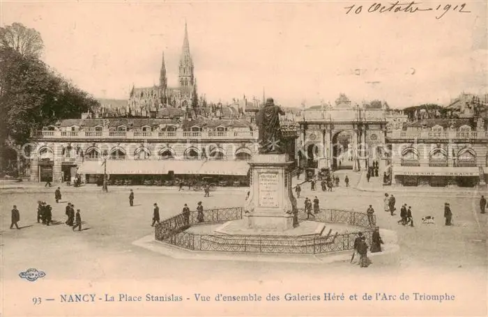 Nancy_54 La Place Stanislas Vue d’ensemble des Galeries Here et de l’Arc de Triomphe postalisch gelaufen 1912 Erhaltung siehe scans [WerneD78] WernPID7