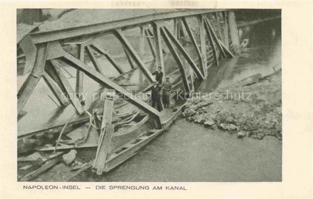 AK / Ansichtskarte Napoleon-Insel Ile Napoleon Rixheim Mulhouse 68 Haut-Rhin Die Sprengung am Kanal Truemmer 2. Weltkrieg