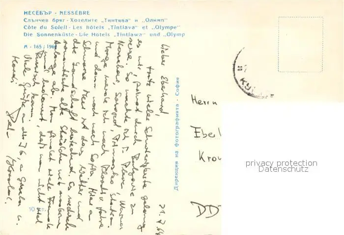 Nessebre_Nessebar_Nessebyr Sonnenkueste Hotels Tintiawa und Olymp postalisch gelaufen 1964 Erhaltung siehe scans [WerneD78] WernPID7