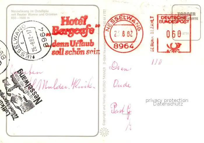 Nesselwang mit Reuter Wanne und Gruenten Nesselwang postalisch gelaufen 1982 Erhaltung siehe scans [WerneD78] WernPID7