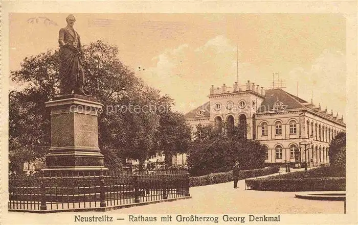 AK / Ansichtskarte Neustrelitz Rathaus mit Grossherzog Georg Denkmal