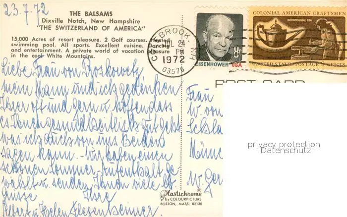 New_Hampshire_US-State The Balsams Dixville Notch The Switzerland of America Air view New_Hampshire_US-State postalisch gelaufen 1972 Erhaltung siehe scans [WerneD78] WernPID7