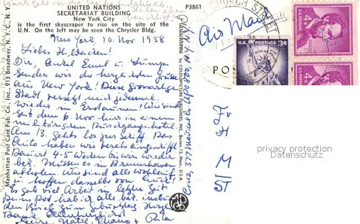 New_York_City Secretariat Building New_York_City postalisch gelaufen 1958 Erhaltung siehe scans [LiesaD40] LiesID40