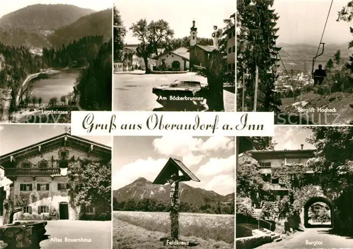 Oberaudorf Lugsteinsee Baeckerbrunnen Berglift Hocheck Altes Bauernhaus Feldkreuz Burgtor Oberaudorf postalisch nicht gelaufen 1921-1965 Erhaltung siehe scans [FriedD77] Frierer
