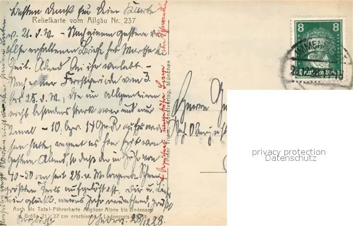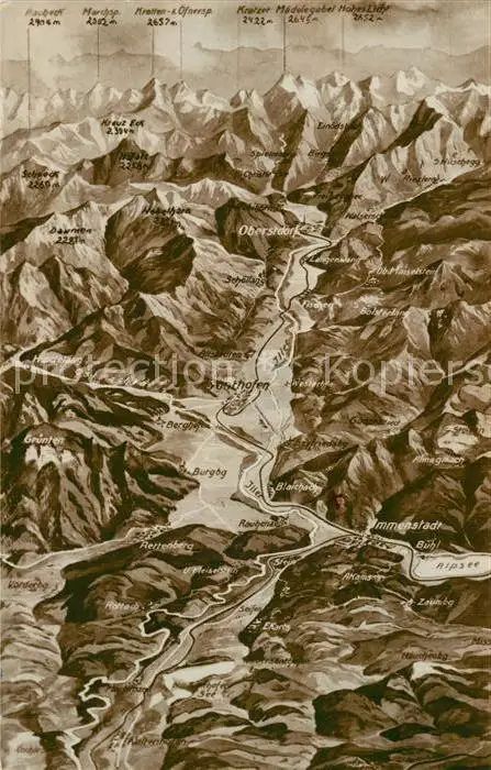 Oberstdorf Reliefkarte vom Allgaeu aus der Vogelperspektive Nr 237 Oberstdorf postalisch gelaufen 1928 Reliefkarte Erhaltung siehe scans [FriedD77] Reliefkarte Frierer