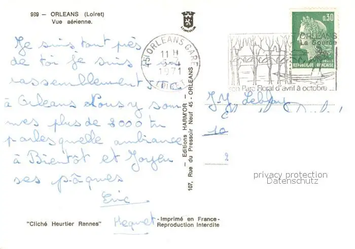 Orleans_Loiret Vue aerienne Orleans_Loiret postalisch gelaufen 1971 Erhaltung siehe scans [WerneD78] WernPID7