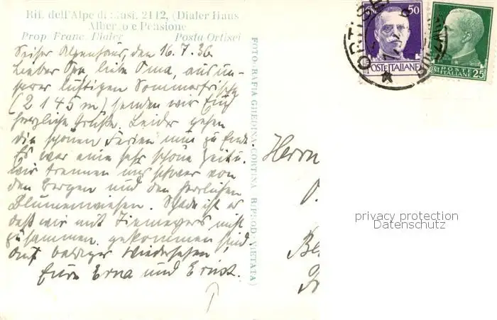 Ortisei_St_Ulrich_Groednertal_IT Rifugio dell Alpe di Siusi Albergo e Pensione postalisch gelaufen 1930 Erhaltung siehe scans [WerneD78] WernPID7