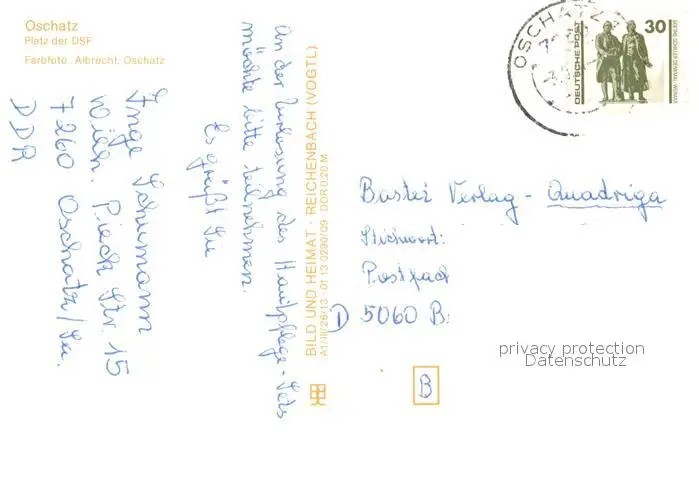 Oschatz Platz der DSF Oschatz postalisch gelaufen nach 1965 Erhaltung siehe scans [FriedD77] Frierer