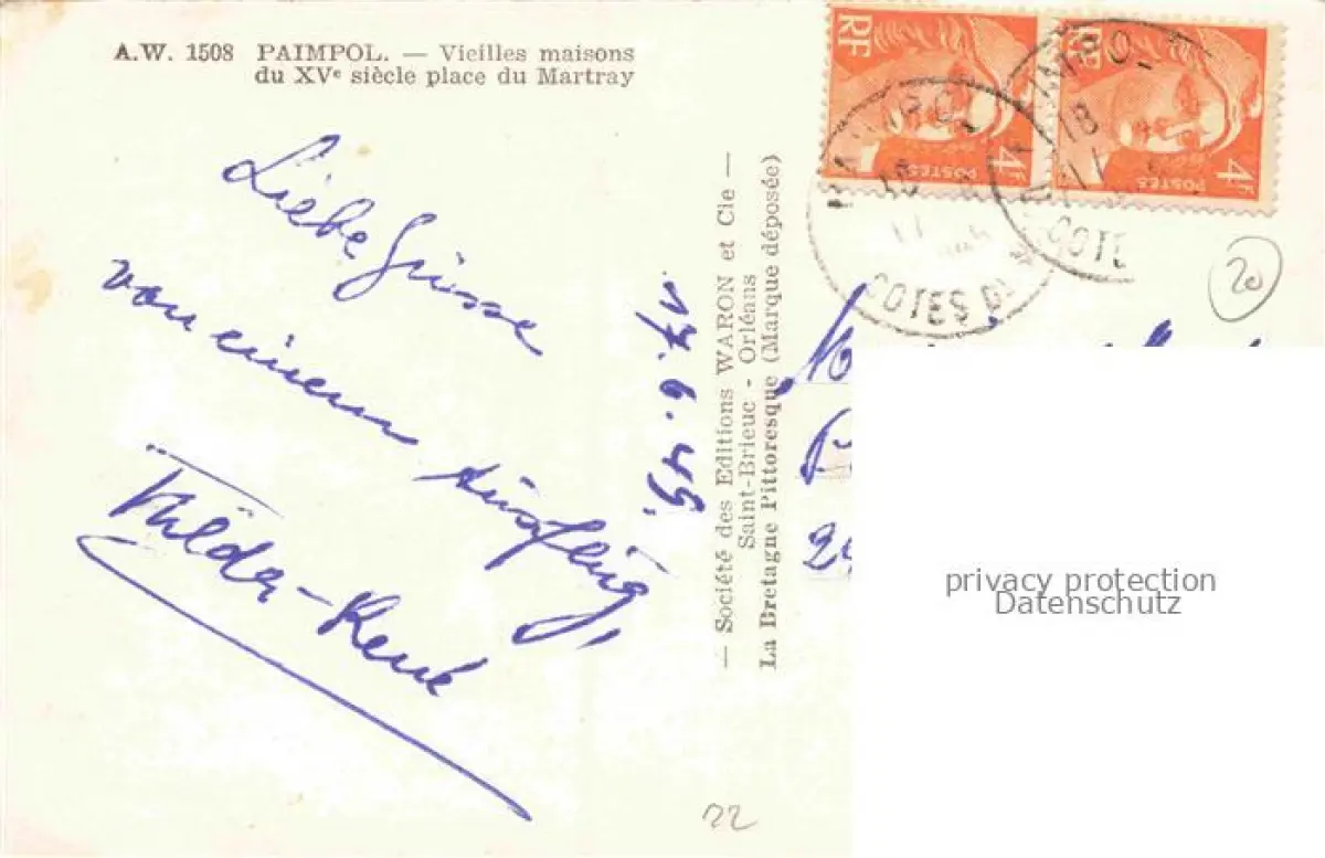 14107649 PAIMPOL Saint-Brieuc 22 Cotes-d Armor Vieilles maisons du XVe siècle Place du Martray postalisch gelaufen Erhaltung siehe scans [FriedD77] carte postale Frie Katcode 11170022422162