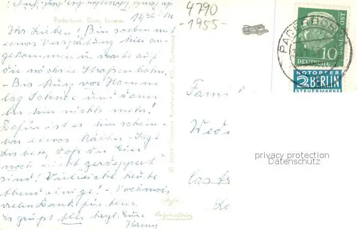 Paderborn Dom Inneres Paderborn postalisch gelaufen 1955 Erhaltung siehe scans [WerneD78] WernPID7