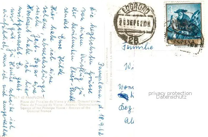 Pamplona_Navarra Plaza del principe General Franco Pamplona Navarra postalisch gelaufen 1962 Erhaltung siehe scans [KathaD81] Kathoren